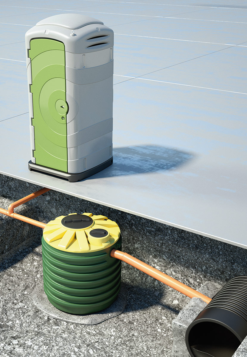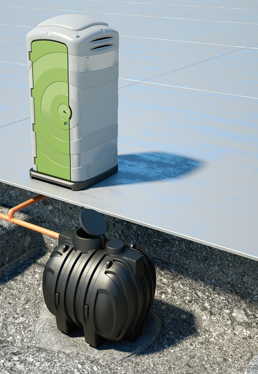 Rototec Chemical Toilets are not only manufactured with different coloured finishes but can also be personalised with custom graphics. In this way, the finishes have a dual function: respect for the surrounding environment by reducing the visual impact of the toilet cabin to zero (e.g.: perfect camouflage for a golf course) or highlighting its presence and making the product recognisable by means of high impact graphics