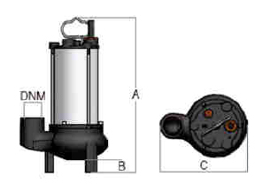 Submersible electric pumps with macerator impeller. These are ideal for pumping of sewage, including sewage with solid or stringy matter in suspension, such as water from marshy land and untreated domestic sewage. Reduction of the solids into small fragments and the high pressure generated by the pump allow considerable differences in level to be overcome